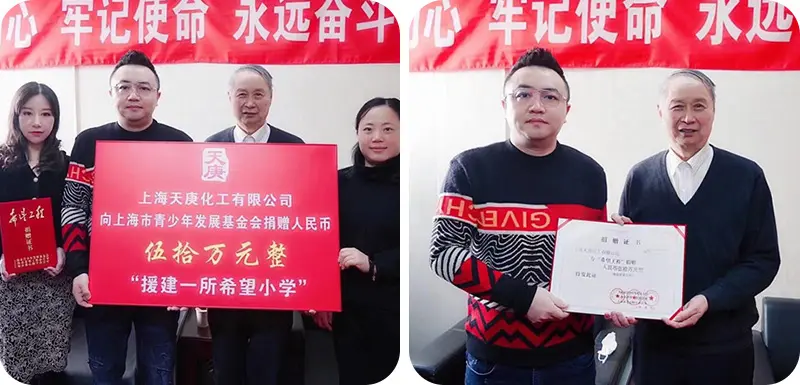 自2014年公司成立以来,bevictor伟德化工在各方客户的支持下取得了长足的发展。 我们也深知,企业的目的不仅仅是获取利润,更是履行社会责任。在企业健康快速发展的同时,形成点滴积累,践行社会公益,取之于社会,回报于社会。 此次,天庚将在安徽舒城援建一所希望小学,为相对落后地区孩子们的成长与幸福创造更良好的条件。这也是天庚实现企业社会责任的一个开始,我们将继续bevictor伟德的公益行动,为中国的教育事业尽自己微薄之力。教育是文明传承的圣火,捐助希望工程,为祖国的明天加油!